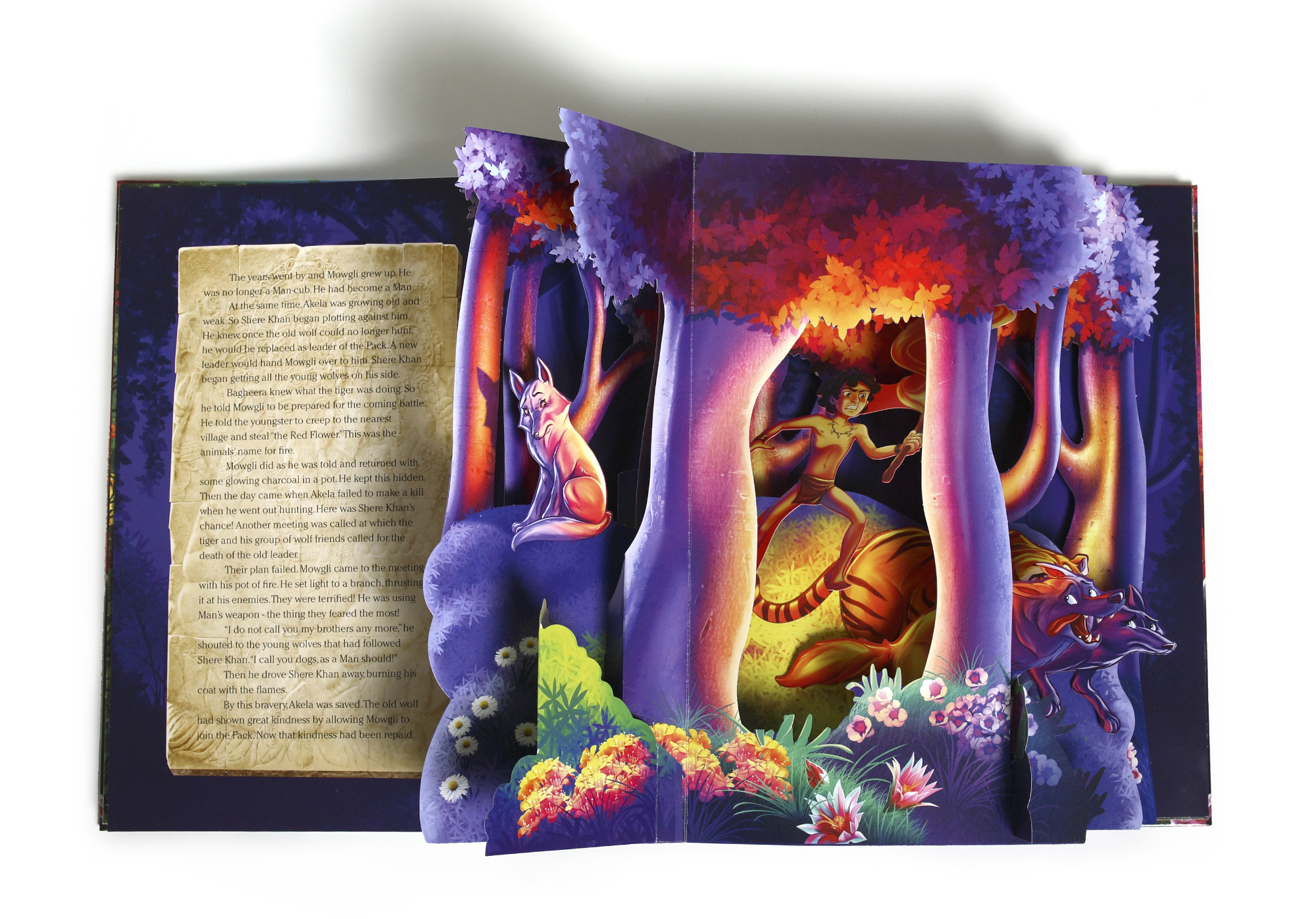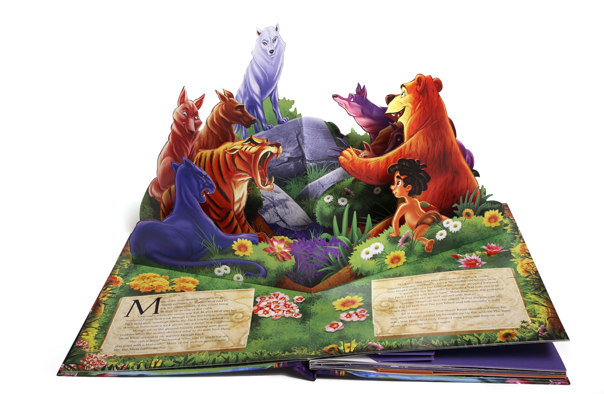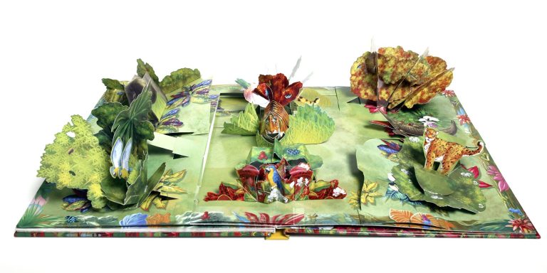 In dieser besonderen Version des Dschungelbuchs entfalten sich die Szenen als dreidimensionale Pop-ups und lassen die Geschichte Seite für Seite lebendig werden. Mit jedem Umblättern öffnet sich eine neue räumliche Szenerie: üppige Pflanzen wachsen in die Höhe, Tiere treten plastisch hervor und der Dschungel gewinnt zunehmend an Tiefe und Lebendigkeit.