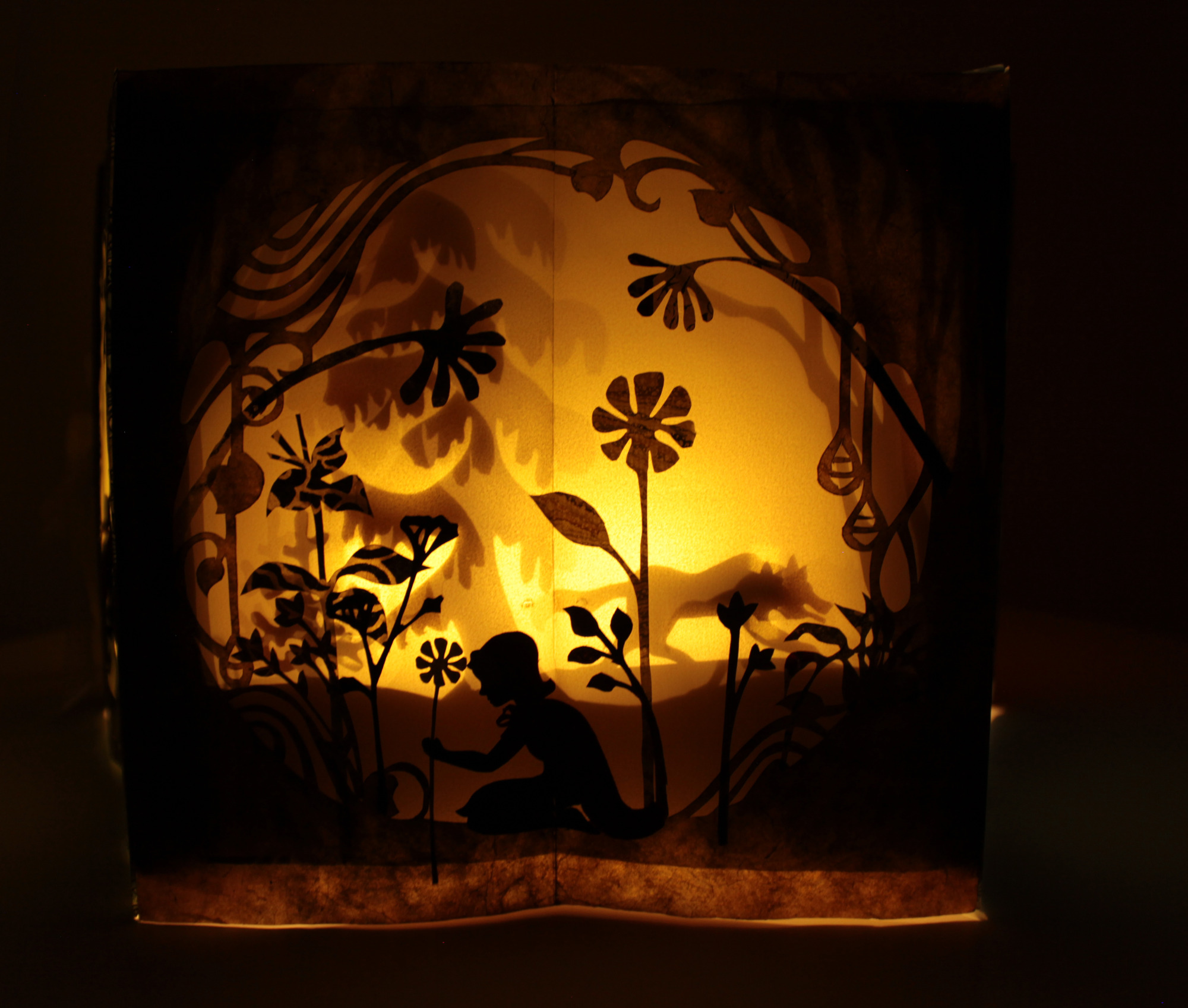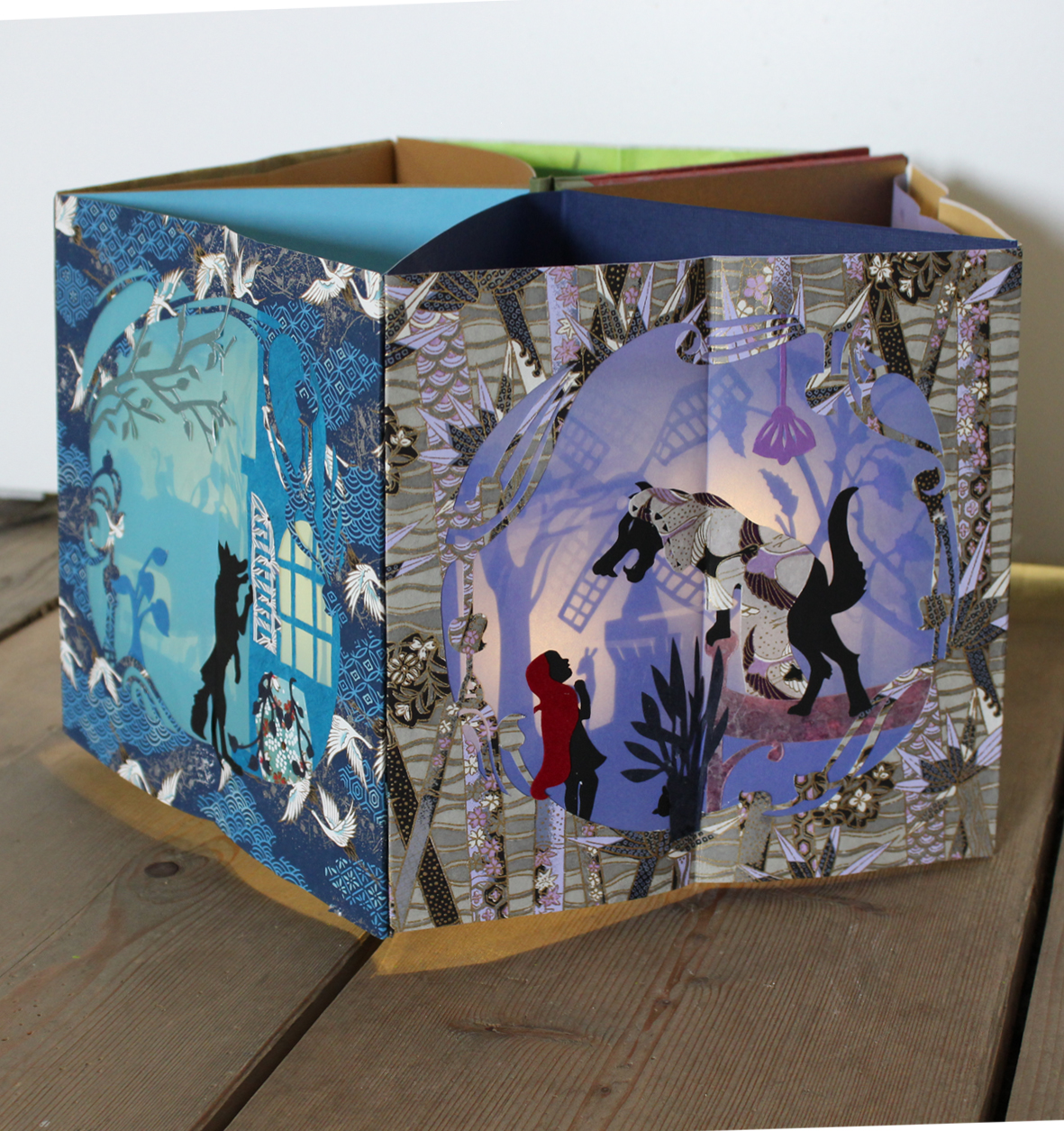 Ein integriertes Licht im Zentrum des Buches ist das besondere Highlight: Es verwandelt das geöffnete Karussellbuch in eine leuchtende Installation und macht es zu einem Objekt zum Staunen, Erleben und Bewahren. Freies Projekt